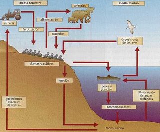 El fósforo es un elemento que se puede encontrar en las estructuras del ADN de los organismos. El fósforo es el principal factor limitante del crecimiento para los ecosistemas, porque el ciclo del fósforo está principalmente relacionado con el movimiento del fósforo entre los continentes y los océanos. Al contrario que en el ciclo del nitrógeno, en el del fósforo no hay fase gaseosa en el aire.