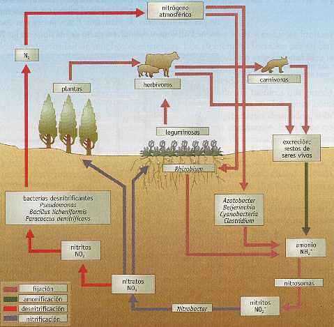 El nitrógeno es una sustancia esencial para toda la vida en La Tierra. La mayor parte del nitrógeno se encuentra en el aire en forma gaseosa, pero también se puede encontrar nitrógeno en el agua y en el suelo en diferentes formas. Allí, será descompuesto por bacterias y absorbido por plantes y animales.